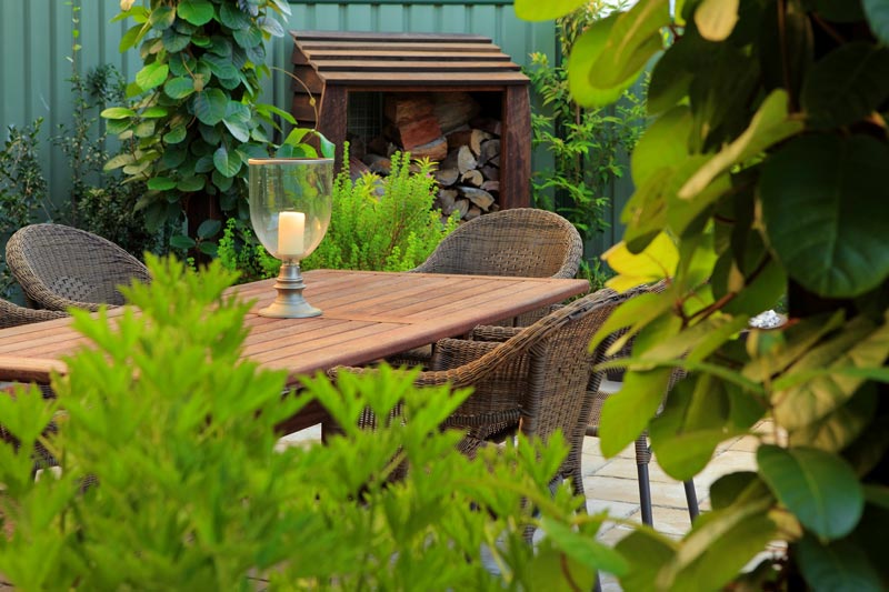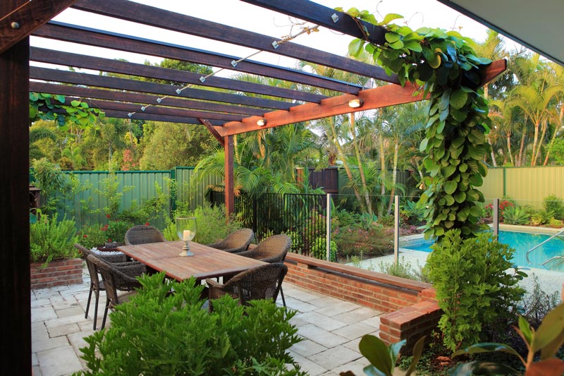 The area was to also function as an outdoor living space, with a special emphasis on evening use. Carefully selected pavers for the flooring, and recycled pavers as bricks for the hob walls invoke the feeling of an ancient Italian ruin. Hardwood timbers of generous dimensions complete the feel of timeless elegance and luxury.